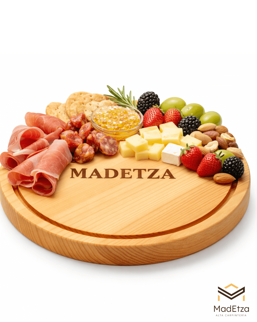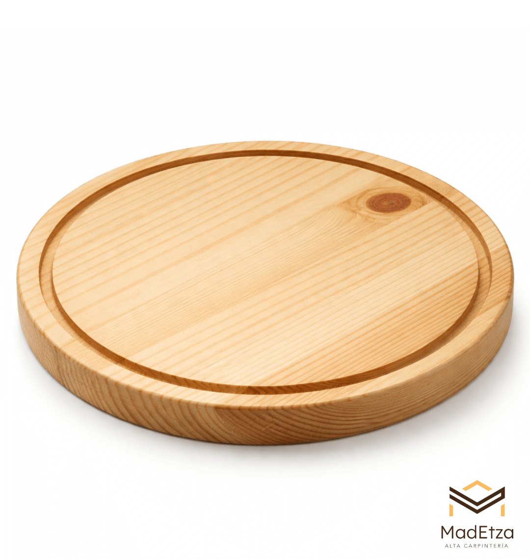 Con un diseño sencillo y funcional, esta tabla circular de pino es perfecta para presentaciones pequeñas y uso diario. Ideal para botanas, quesos y mesas informales.